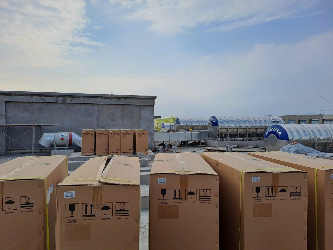 + Sàn mái là sàn bê tông rỗng, cho nên chỉ chịu được tải trọng nhé, bồn bảo ôn là 10m3