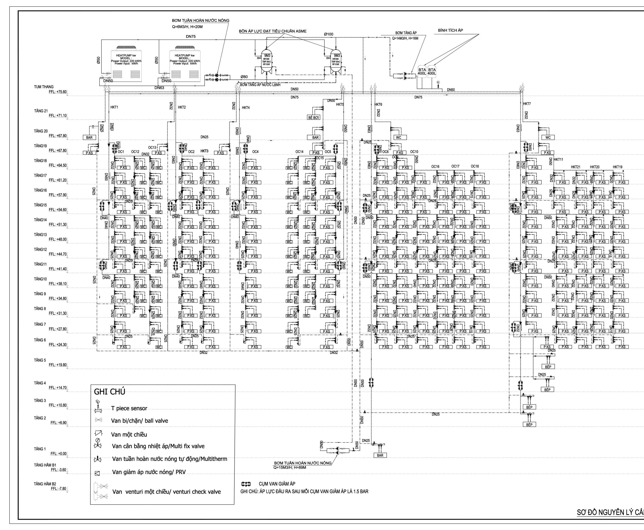 Sơ đồ hệ thống Heat pump Ariston khách sạn ABC theo thiết kế